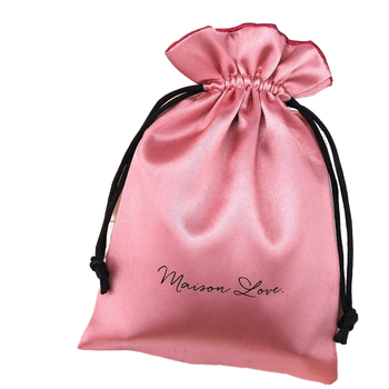 Custom Logo Printed Pink Satin Drawstring Bag for Luxury Hair Silk Perfume & Jewelry for Gift Packaging