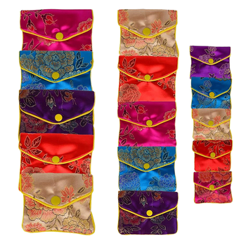 תיק תכשיטי סאטן בסגנון סיני מרובע עם פרח עיצוב רקמה סיכת בד טוסל רוכסן כפול רוכסן תיק מתנה לסביבה